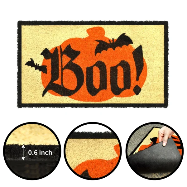 • Greet your guests or trick-or-treaters this Halloween season with this spooky “Boo” Halloween doormat that is made of 100% Natural Coconut Coir Fiber. It’s the first thing that your guests see when they arrive at your home, you should switch from your old doormat to something a little extra spooky! Get this easy-to-clean Halloween Welcome Mat!
