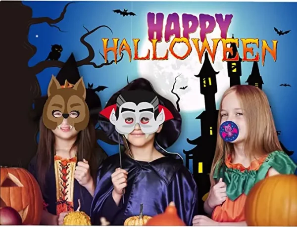 • Halloween Picture Backdrop includes Photography Backdrop and Studio Props DIY Kit. This comes with 1 Happy Halloween backdrop and 13 Masks and Photo Props that are Great as Photo Booth backgrounds, Costume Dress-up Party Supplies, and Event Decorations.
