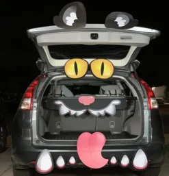 Getting ready for Halloween fun? Consider doing a cat trunk or treat instead of going door to door this year, you’re going to want to have this theme for trunk-or-treat around. We have something spooky great for everyone, whether you have time to be crafty or are scrambling to decorate your automobile at the last minute. It has 2 huge eyes, nostrils, tongue, and fangs. Come with weather-resistant trunk or treat ideas. The eyes measure 14 inches. Fangs measure 10 inches for the largest. Adding a lot of festivity to your Halloween. Additionally, it is ideal for decorating Halloween trunks or treats, arches, and garage doors. We’ve compiled some of the best trunk-or-treat theme options from among the countless Halloween automobile decoration themes available.