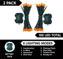 100 Orange & Purple LED Green Wire String Lights(8 Modes, 6 Hr Timer)