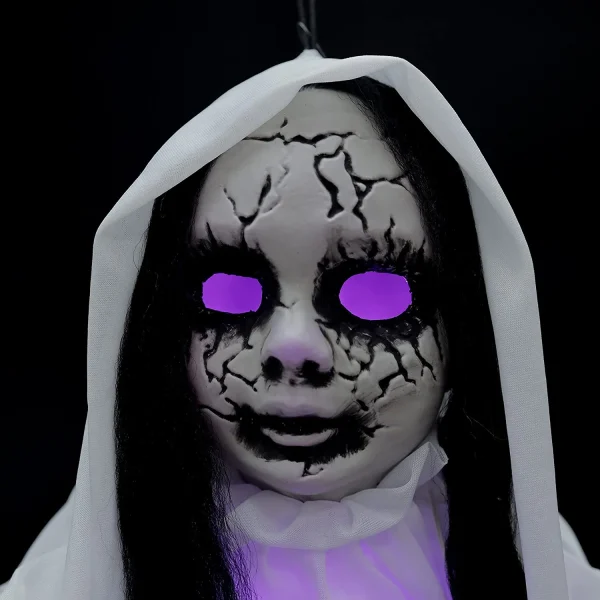 • Our Ghost Hanging Decorations include 1 pack of Creepy Hanging Decoration with a hollow head. The whole head of this decor glows purple inside and the body also glows. The height is 43 inches and the width is 26 inches.