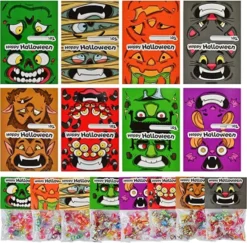 64pcs Halloween Cellophane Treat Bags With Flip Over Cards