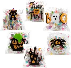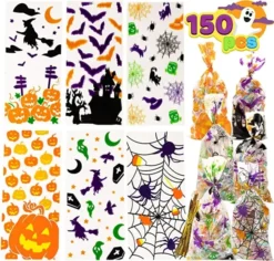 150 Pcs Halloween Square Double Sided Cellophane Candy Treat Bag