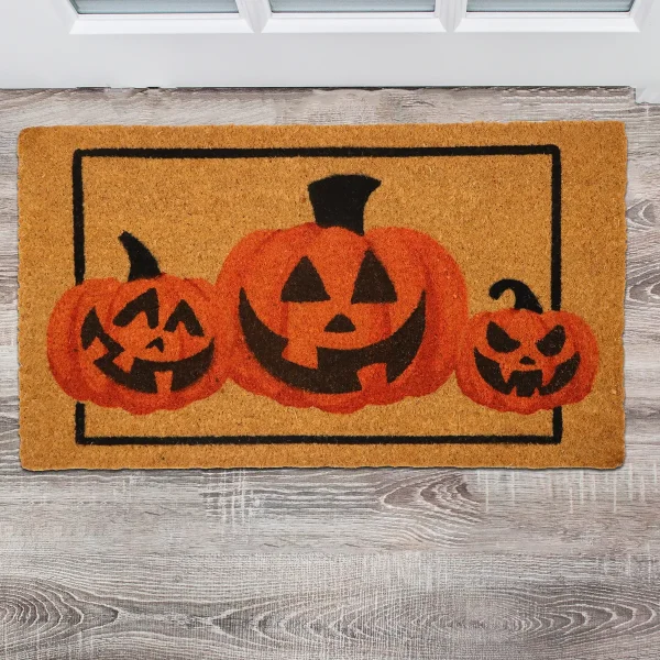 • Pumpkin Coir Doormat measures 17” x 30” inches. Made from 100% Natural Coconut Coir Fiber.