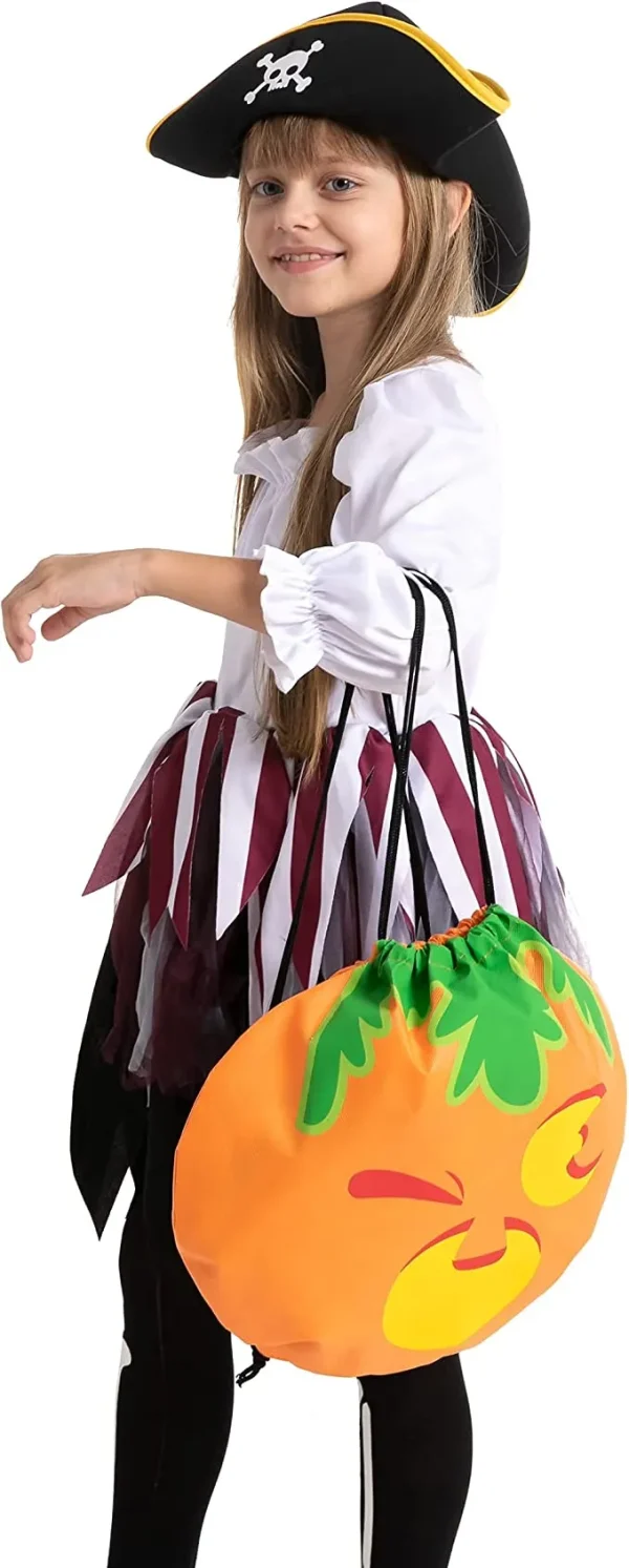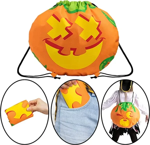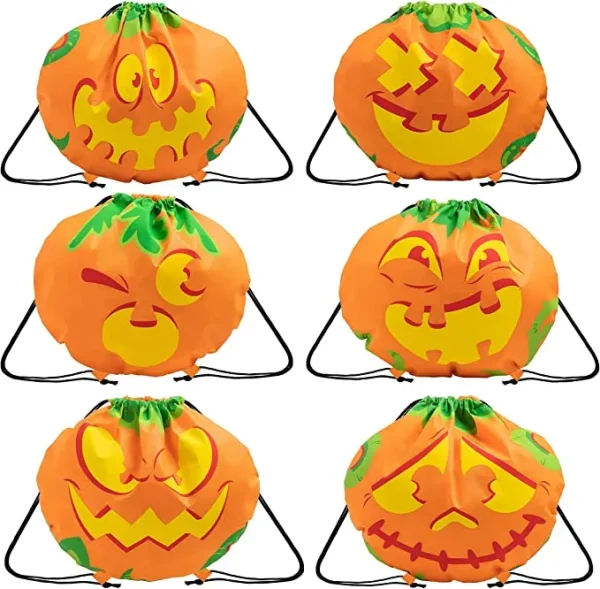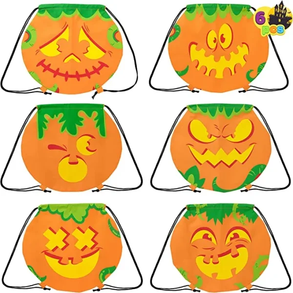 • Drawstring Halloween Treat Bags comes with 6 Different Pumpkin Facial Expressions. Size: (15”x17”). Perfect as candy storage for trick or treating, haunted house Halloween or witch garden parties, game prizes, etc.