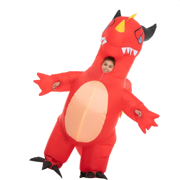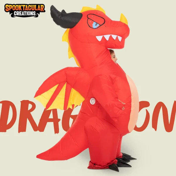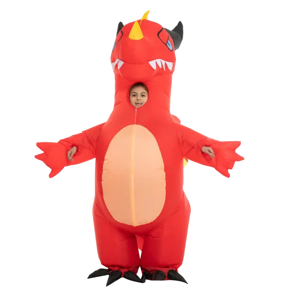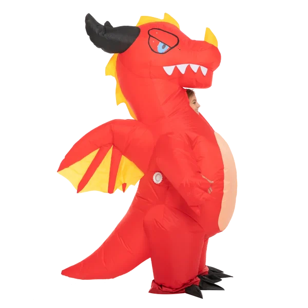Red dragon will greatly add fun and entertainment to your holiday experience. It is made of polyester, very easy to use, and comfortable to wear. It is equipped with a high-power air pump that makes inflating and deflating quick and easy to operate. To achieve the best-inflated form, adjust the direction of the pump to make sure the suit is inflated evenly from top to bottom, left and right. This dragon inflatable costume is ideal for role-playing, trick-or-treating, theater productions, daycare, pretend play, outdoor activities, daily playtime, festivals, theme parties, Halloween costume parties, dragon-themed party costumes, and many more! Transforming into a fierce mythical creature is in your hands now! This is a costume idea that you can now achieve with your kids this spooky season.