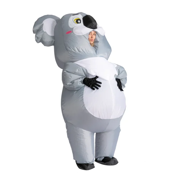 • Koala Inflatable Costume Includes Instruction Sheet, Inflatable Koala Suit, and Air Pump. Air Pump Requires Portable Power Bank or 4 AA Batteries. (Batteries Not Included)