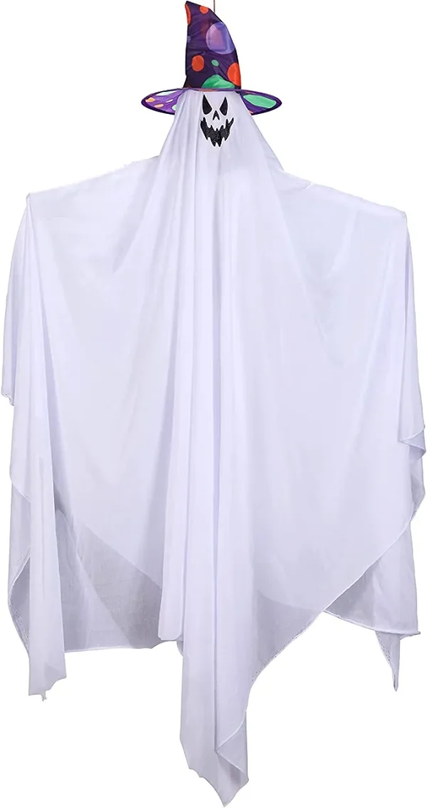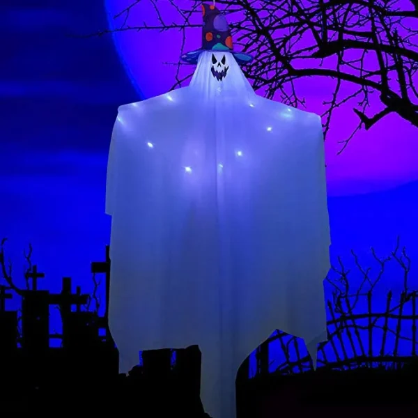 - FLYING GHOST: JOYIN 47 inches Light up hanging ghost is your perfect addition for haunted ambience. This Halloween prop featured with creepy blue light, looks like it’s ready to scare your guests, friends and trick-or-treaters.