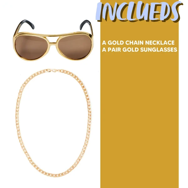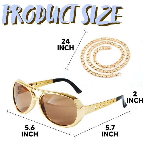 - ENDLESS FUN. Fantastic for dress-up occasions with a Rock ‘N’ Roll and 1950s, 60s, 70s, 80s vibe are these Elvis costume glasses and necklace! This Elvis star costume set compliments any outfit and makes it suitable for various occasions such as Halloween parties, cosplay parties, birthday parties, carnivals, stage performances, etc. They are also wonderful for everyday use! Every time you wear these classic aviator style glasses, you’ll like it!