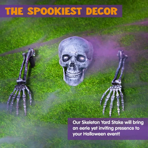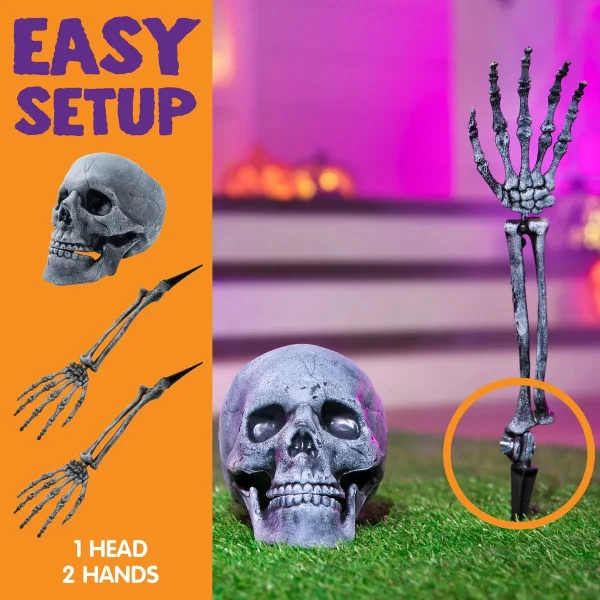 - SUPER VALUE PACK. Our graveyard stakes include 1 Realistic Skull and 2 Skeleton Arms with Plastic Stakes that will make your yard look creepier. The gravestones halloween yard arm stakes work well at holding them in place against any wind.