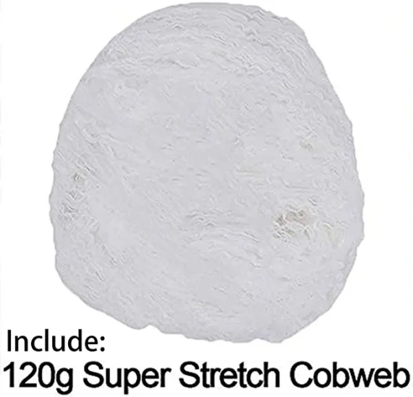 • Spider Web Decoration Outdoor includes Terrifying Halloween Gaint Spider Web Decoration (23ft by 18ft.) with a Gutter Bracket and 6 Ground Stakes. 120 g Super Stretch Cobweb. 24 Spiders.