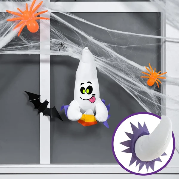 - REAL FUNCTION. Our Halloween Ghost Window Decoration feature an 11.3”*8.2”, Plush Halloween white ghost holding candy corn. Halloween Window Ghost Breaker design