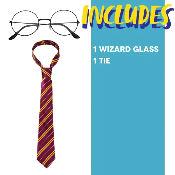 - SUPER VALUE PACK. Our Wizard Glasses and Tie Set include 1 glasses and 1 tie that can be used for the wizarding world cosplay. Our Halloween set works great at any dress up event or costume party with a Harry Potter or wizard theme.