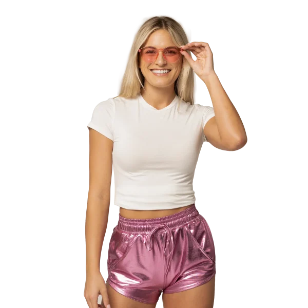 - SUPER VALUE PACK. Includes a Pair of Pink Color Glasses and a Pink Pair of Metallic Shorts.