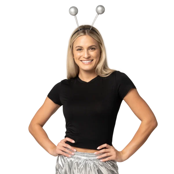 - SPOOKY GET-UP. Our metallic shorts for womens includes a Headband designed with 2 Silver Sparkling Bobble Glitter Balls and a Pair of Silver Laser Fabric Shorts. This silver shiny shorts set is perfect for your Playful Eye-catching look!